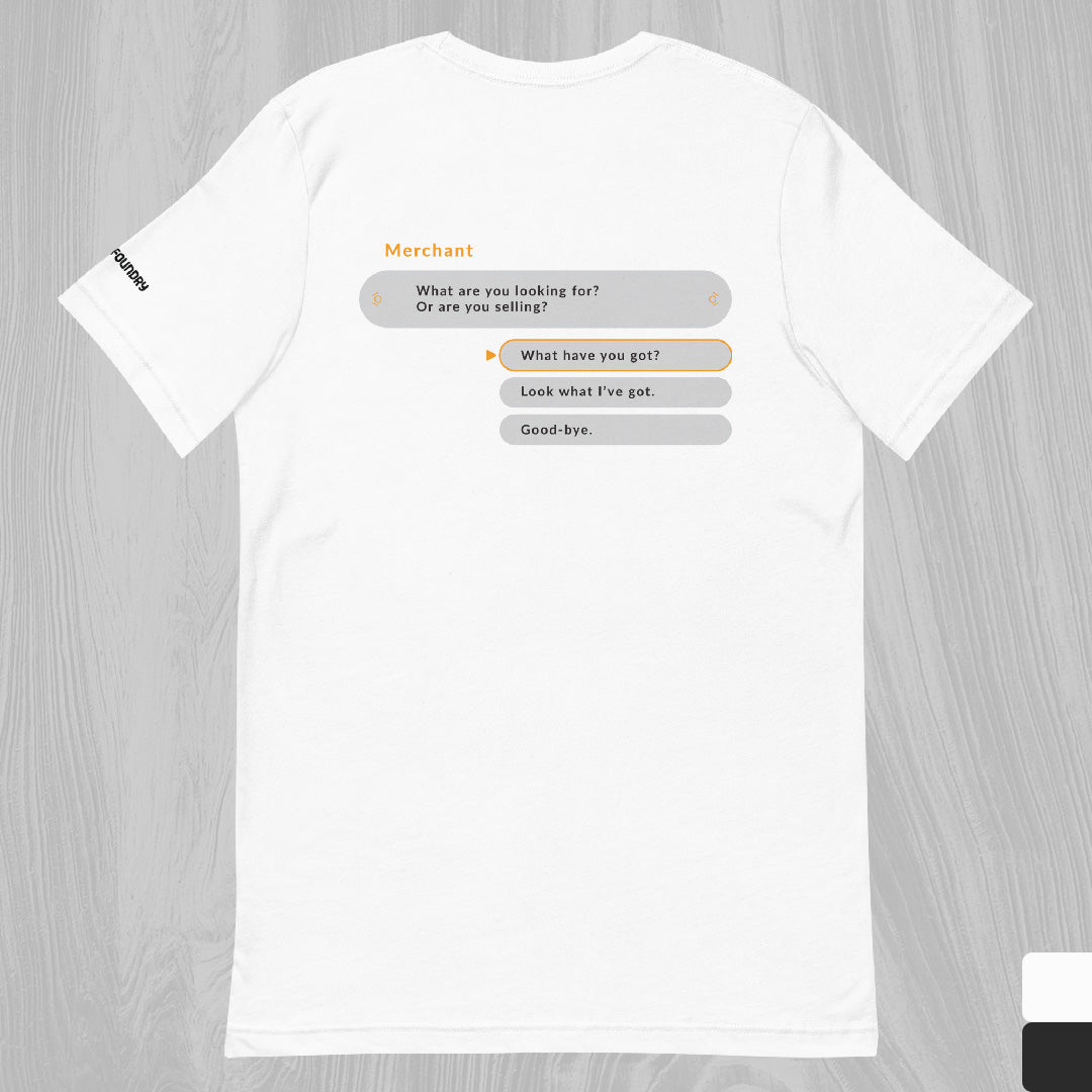 "May I have your address?" he eagerly asks. "You'll be the first to know about new products and exclusive offers at Rune Foundry!"