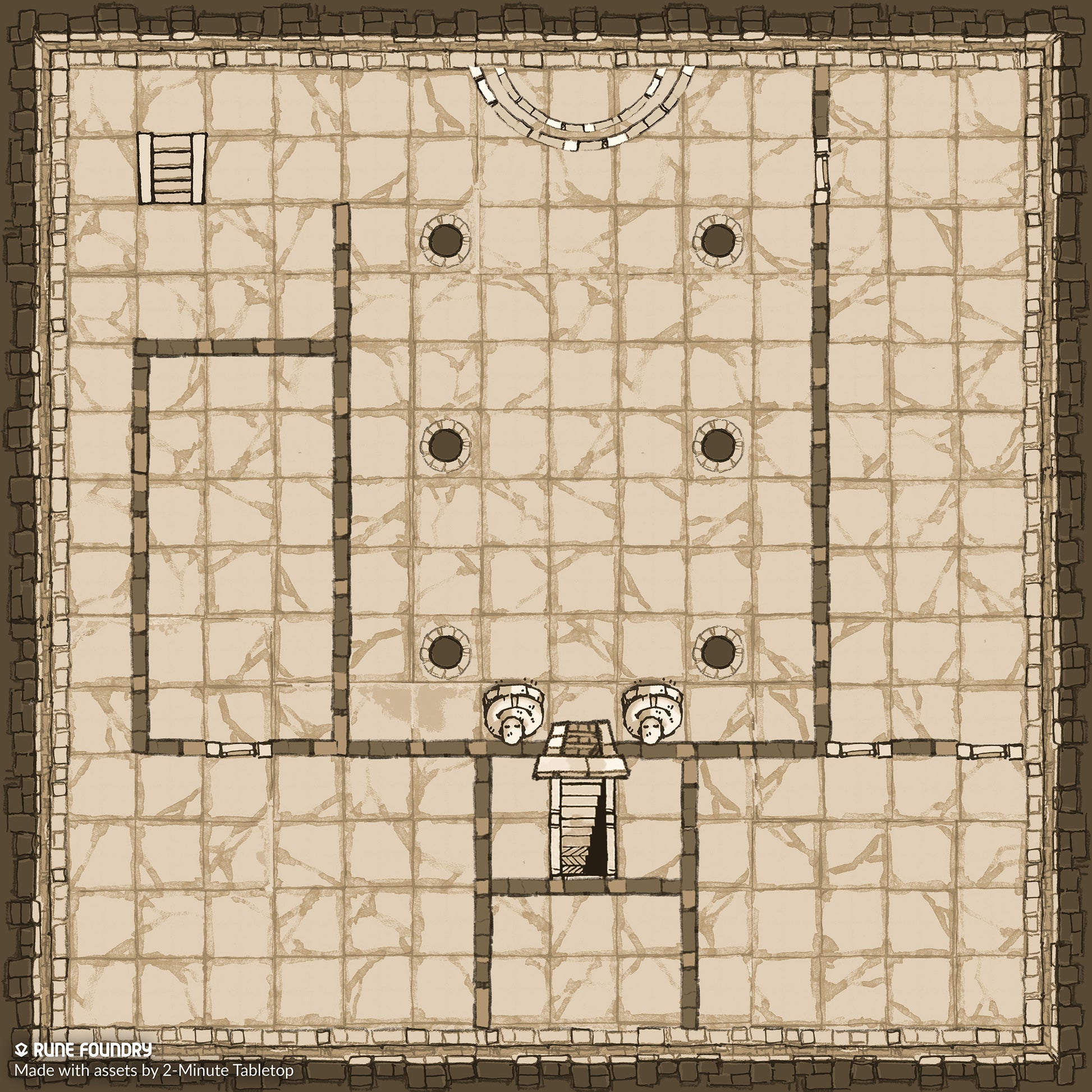 Looking for your next dnd dungeon crawl? Try this three-floor pyramid battle map. Each floor offers a unique set of rooms to be discovered, getting smaller as you progress from the bottom level to the top. This map pack is intended to be used in our dnd one shot, Pyramid of Kha'sheth, but you can also adapt it to fit your own campaigns.