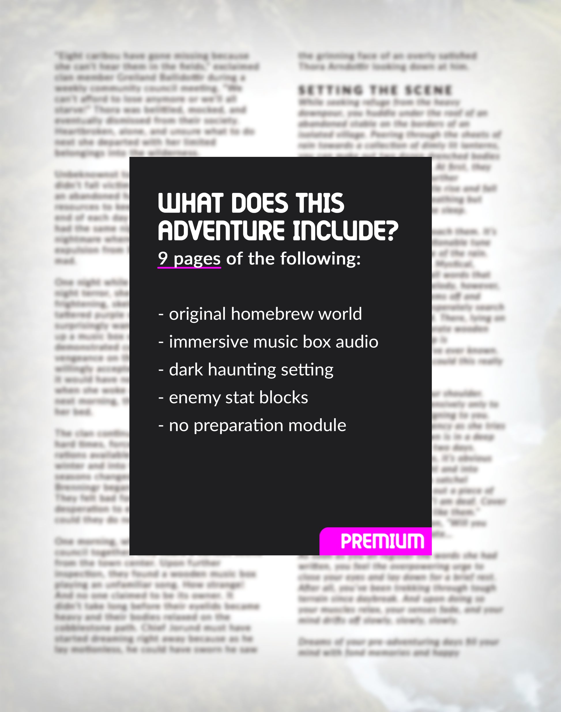 Enjoy this DnD one-shot adventure, compatible with 5e! Add to cart and when you check out, the one-shot PDF will be sent to the email address that you provide.