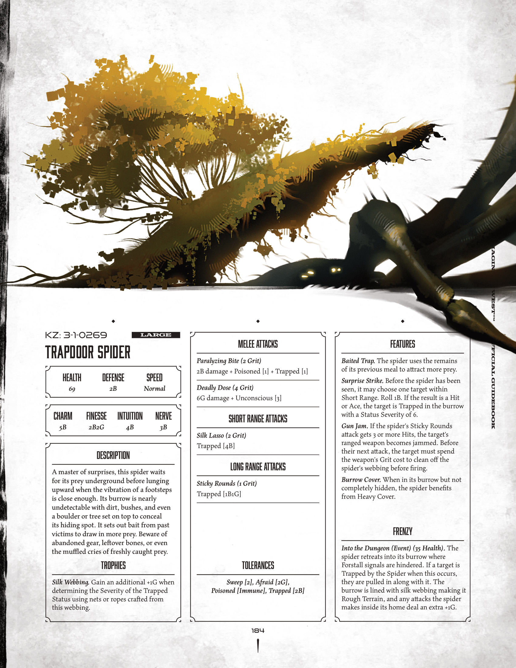 The Wild Imaginary West Official Guidebook contains all the rules, lore, and resources needed to hunt cryptid monsters, craft weapon upgrades, ride mechs into the sunset, and more. Choose one of 7 different Trades to create your unique character from. Duel your enemies at high noon. Build your reputation with any of 7 official factions. Take trophies from slain monsters and display them proudly.